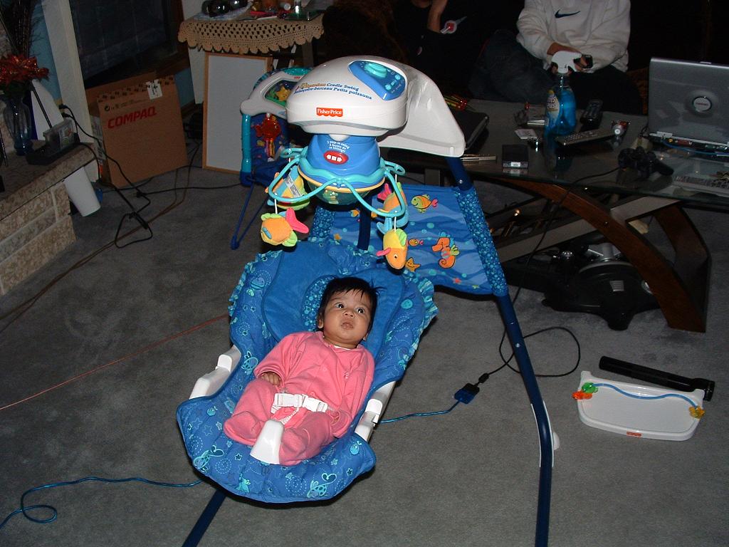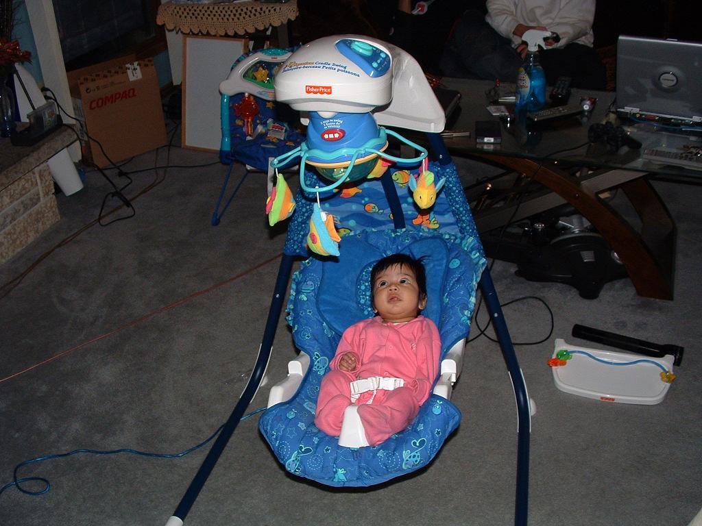 Uncle Colin bought baby a swing.