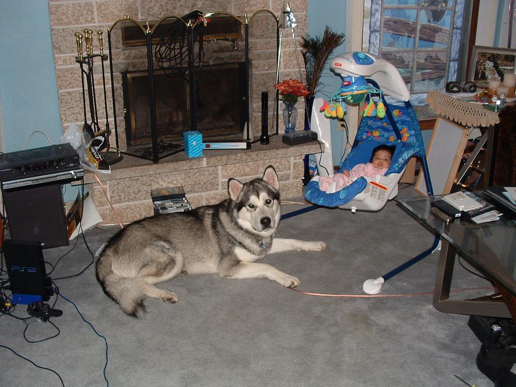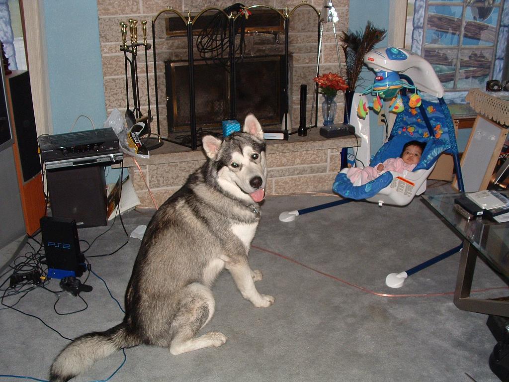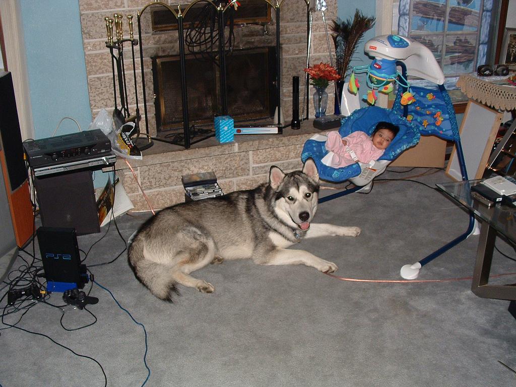 Zeus is 11 months old and baby is 11 weeks old.
