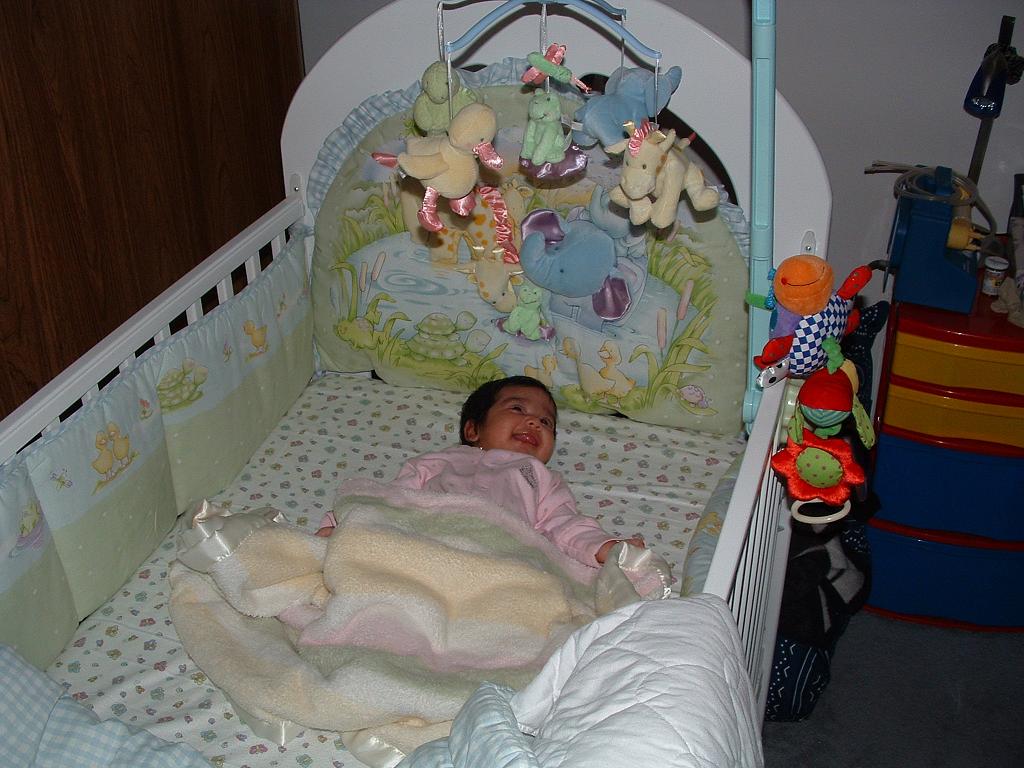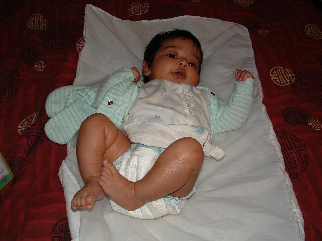 So happy getting her diaper changed.